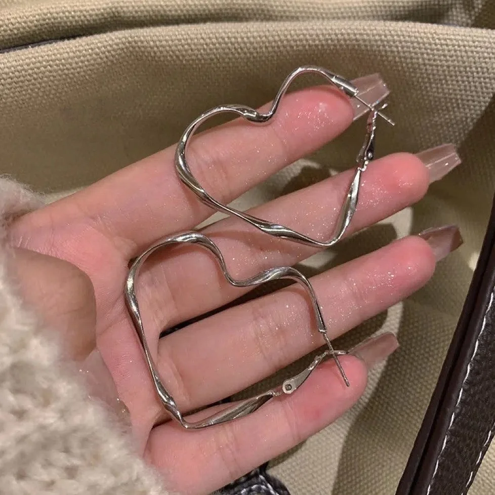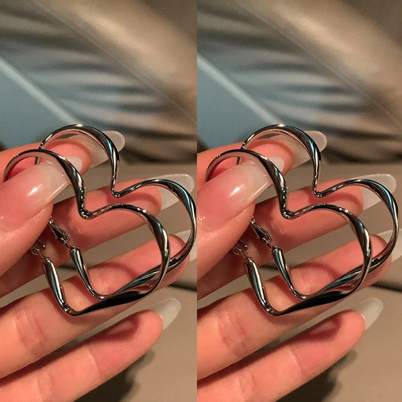 1Pair Big Hollow Heart Pendant Hoop Earring Women Fashion Exaggerated Heart Design Earring Cuff for Gir Jewelry Gift