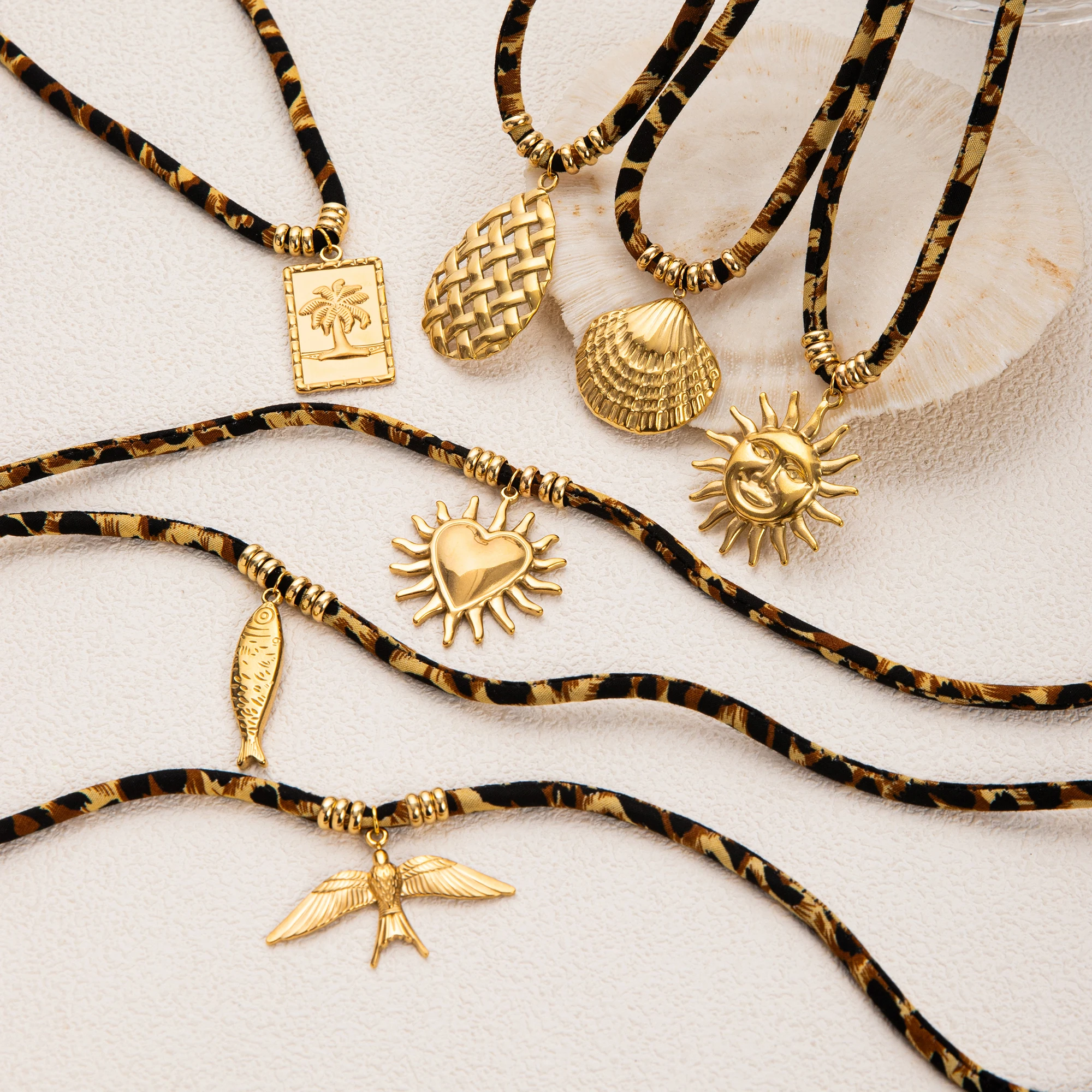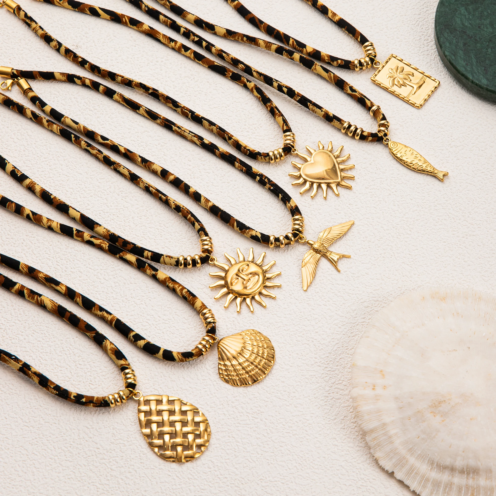 Fashion stainless steel pendant with leopard print velvet rope, women's design necklace, versatile for autumn and winter