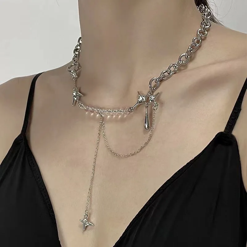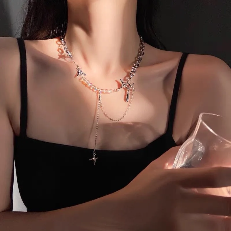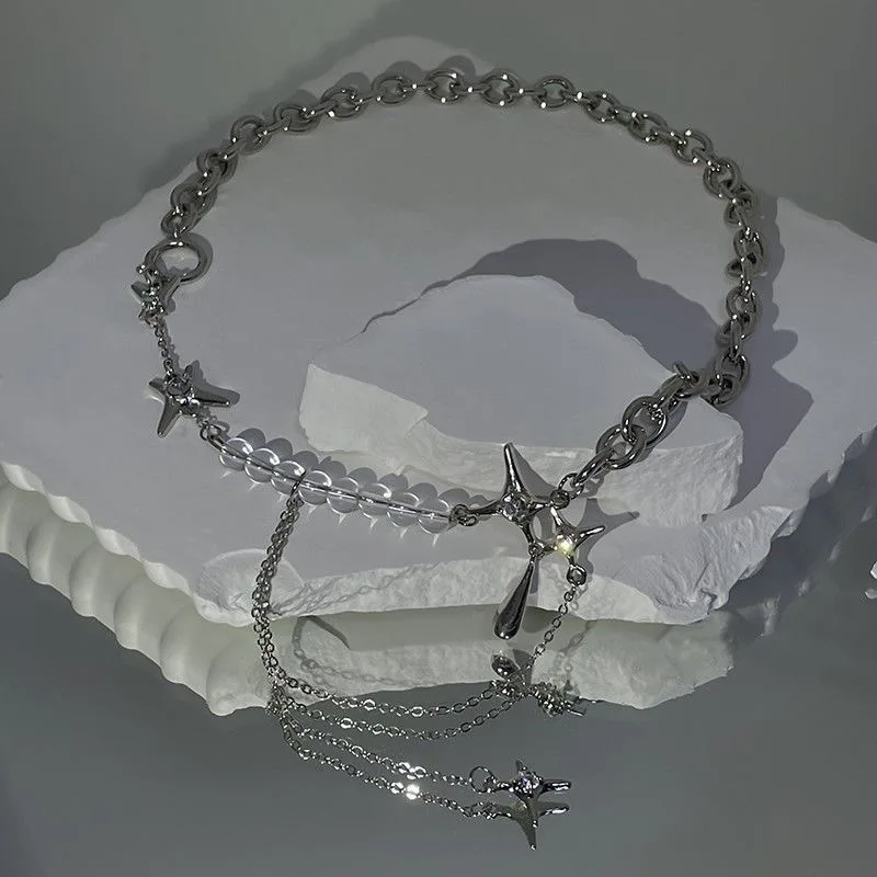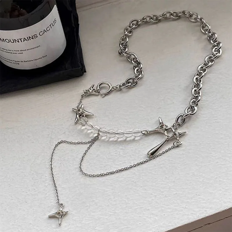Y2k Irregular Star Chain Necklaces Women's Fashion Transparent Beads Zircon Choker Necklace Kpop Silver Color Summer Jewelry